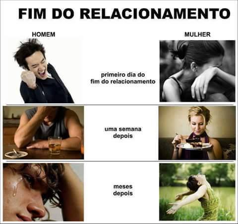 o fim de um relacionamento não é facil para ninguém e por isso mesmo cada um reage dá sua maneira mas lembre-se não é o fim do mundo.